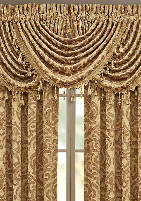 Trimmed with a tassel fringe, this J Queen New York window valance is featured in gold for an elegant look.