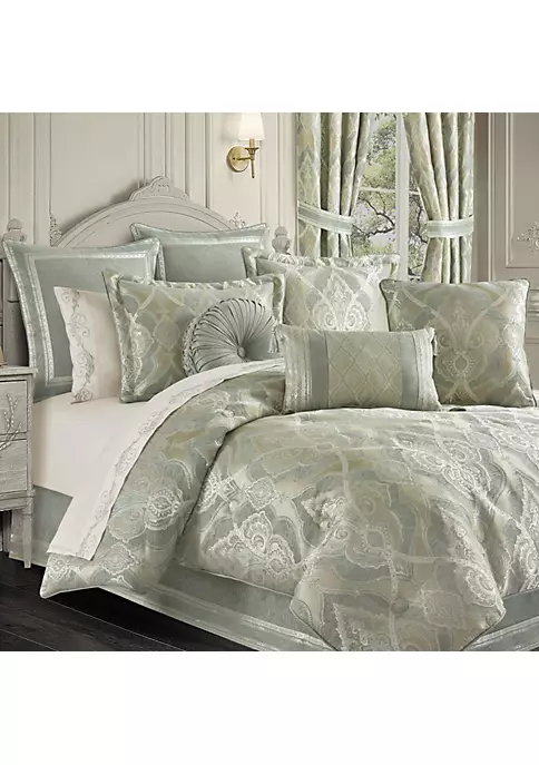 The Sovana Euro Sham beautifully accents you bedding décor with a stunning reversible backdrop. Designed with a soft sage chenille center, the outer border is framed with a woven chenille engineered stripe. The reverse of the Euro is woven with a chenille foulard design and a hidden zipper closure along the bottom edge, making it the perfect finishing piece to the Sovana bedding set. (Each sham sold separately).