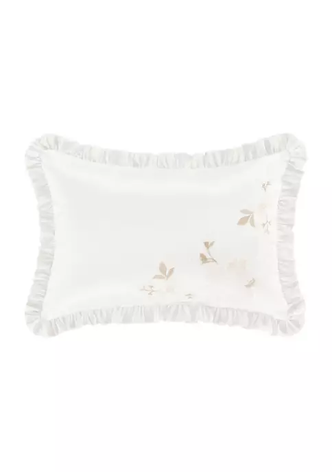 The Spring Garden Boudoir Throw Pillow is beautifully designed, combining a white textured ground with a soft floral embroidery detail. The added romantic ruffle detail surrounding the pillow brings this timeless cottage look together. Add the Spring Garden Comforter Set to add a fresh charm to your decor.