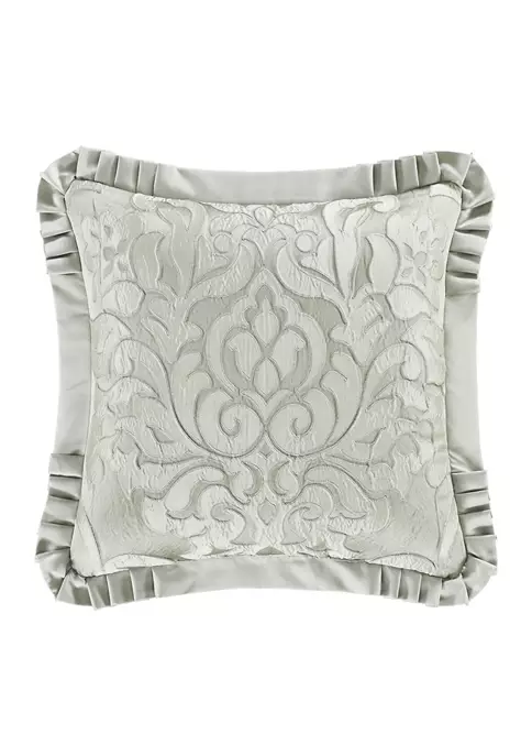 An embellished 20” Square Throw Pillow is a perfect decorating accessory not only to complete the bedding ensemble but as an elegant accent in other areas of the home. Designed with an elaborate pleated flange trim on all four sides with an elegant celadon green woven damask design perfectly centered. The pillow becomes reversible with a plush solid satin on the opposite side.