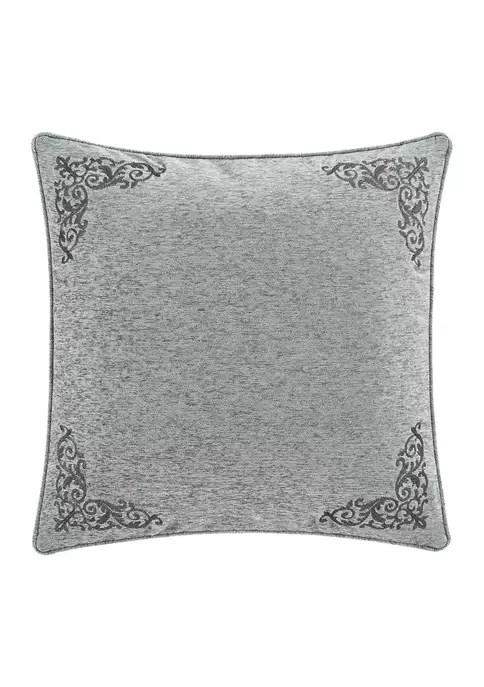 The Tiana Euro Sham is crafted with a beautifully embroidered silver scroll design on a soft blue chenille face. The sham features a hidden zipper closure and is finished with a 1/4″ chenille piping for fine detail.