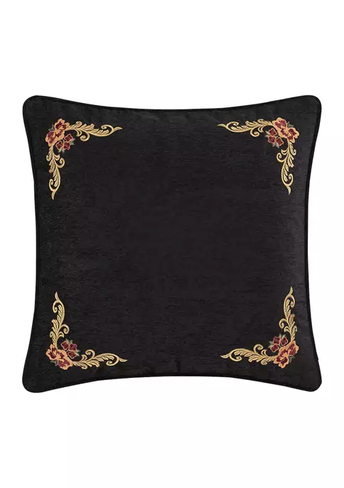 The Toscano euro sham from J Queen New York is made of solid black chenille and is embellished with beautiful embroidery using motifs in all four corners.