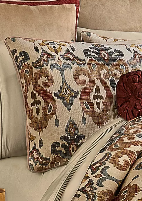 The Tucson Bedding Collection is an intricately woven damask in vibrant earth tone hues of brown, teal, spice and gold set on top of a sand-colored ground. This captivating design is paired with matching shams that are engineered centering the damask pattern, and a faux suede bed skirt with chenille border along the bottom edge.