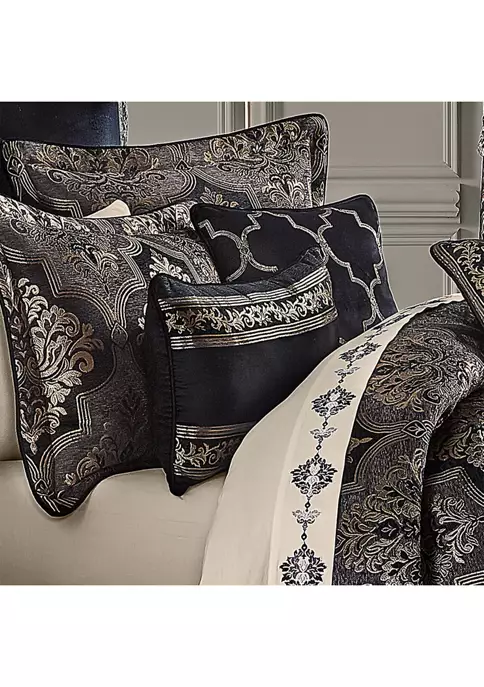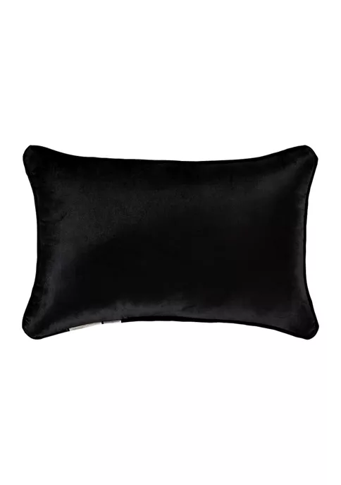 The Windham Boudoir Pillow features a woven chenille scroll stripe running horizontally while reversing to a solid black velvet and framed with quarter-inch piping in black rayon cotton velvet. Pair this accent pillow with the Windham bedding set by for a complete luxe look.