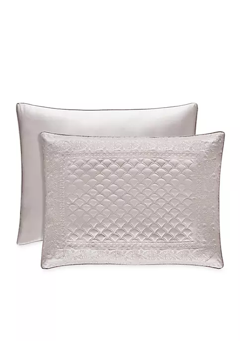 These individually sold pillow shams have a machine quilted pattern and a mitered border containing a foulard and damask embroidery. Take your favorite space to new heights with this gorgeous duo.